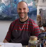 He has been a portrait artist for twenty years, but later moved into life painting, combining non-traditional techniques, including dripping paints, splats and blobs of paint, scraping, scratching as well as more conventional painting methods into a complex layering process. He also works with various transparencies and glazes, drying at different rates to achieve a contrast of textures. Amongst these textures and colours, sometimes hidden, sometimes not, are figures within the scene. Each piece has its own mood or theme but the interpretation of such is often left up to the viewer.[2]