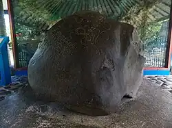 Ciaruteun inscription (Indonesian: Prasasti Ciaruteun) also written Ciarutön or also known as Ciampea inscription is a 5th-century stone inscription discovered on the riverbed of Ciaruteun River, a tributary of Cisadane River, not far from Bogor, West Java, Indonesia. The inscription is dated from the Tarumanagara kingdom period, one of the earliest Hindu kingdoms in Indonesian history.[1]: 15 The inscription states King Purnawarman is the ruler of Tarumanagara.