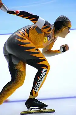 She is the only Canadian Olympian to win five medals in a single Olympic Games and the first female speed skater to win five medals in a single Games at the 2006 Winter Olympics in Turin, Italy.[1] She was a world record holder in the 3000 m until March 2019, when her time was beaten by Martina Sáblíková.[2] She also holds the Canadian records over 1500 m and 5000 m.[3][4] Klassen is the leader of the Adelskalender, which is the all-time world ranking for speed skating. In 2003, Klassen became the first Canadian in 27 years to win the overall title at the World Speed Skating Championships.[3]