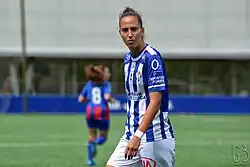 She made her debut on 17 September 2022 against Sevilla with a 3–1 win.[6][7] In Cinta Rodríguez first season she won the Copa de la Reina de Fútbol against Real Madrid winning a via penalty shootout.[8]