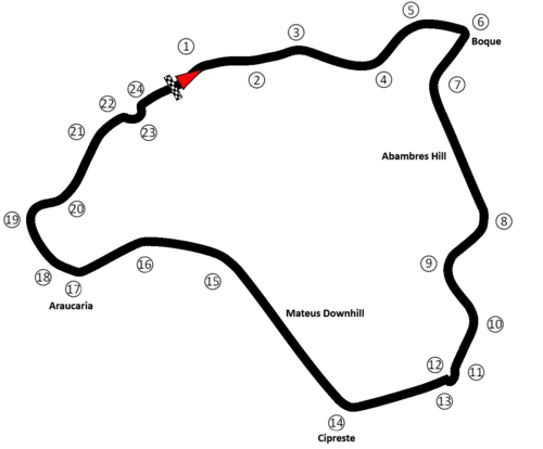 After a deadly accident in 1991, no race would take place in this circuit until 2007, after a length reduction to a 4.785 km (2.973 mi) long renovated layout. From the original circuit, remains the up and downhill section, from turn 6 (Boque), until turn 19, that drivers used to turn left. This section also gives the track big elevation changes.[3]