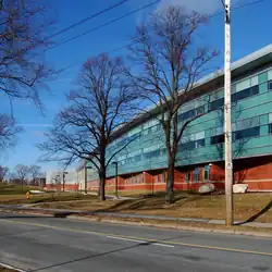 The school contains over 60 teaching spaces: classrooms, laboratories for biology, physics, and chemistry, computer labs, a woodworking lab, family studies kitchen and sewing facilities, two art rooms, and a drama room adjoining the newly opened auditorium, the Spatz Theatre.[13] The school is fully accessible, incorporating an elevator that was formerly installed at St. Pat's.[14] Fire safety features include ceiling-mounted strobe lights and multiple stairwell areas of refuge on each floor that isolate themselves as fireproof doors close automatically during a fire and may only be opened from one direction.