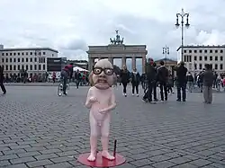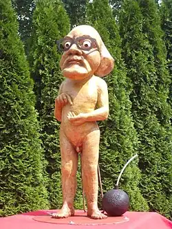 Citizen Włapko (Citizen Skimmer, Polish: Obywatel Włapko) is the name of a 1.10 meter-high sculpture symbolizing a corrupt official.[1] The satirical figure shows a naked boy with the head of a mature man wearing glasses with a mustache and beard. His right forefinger pointing to his left palm indicates a request for money. There is a bomb next to his left foot, which symbolizes the explosive nature of the request, and the nudity symbolizes the whole, "naked" truth.