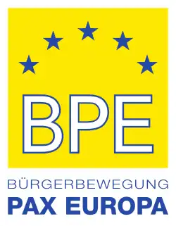 The Citizens' Movement Pax Europa (German: Bürgerbewegung Pax Europa, BPE) is a German anti-Islam, counter-jihad organisation.[1][2][3] It was formed in 2008 from the merger of two previous groups, the Federal Association of Citizens' Movements (German: Bundesverband der Bürgerbewegungen, BDB) formed in 2003, and Pax Europa formed in 2006.[1]
