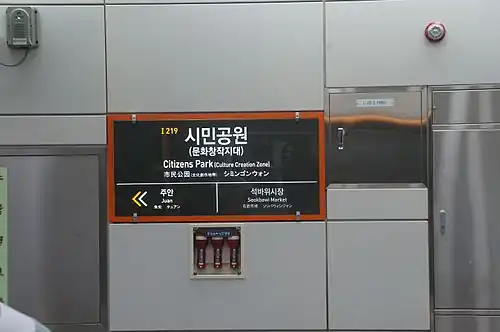 | Hangul | 시민공원역 | ||||