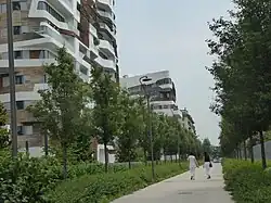 CityLife is a residential, commercial and business district situated a short distance from the old city centre of Milan, Italy; it has an area of 36.6 hectares (90 acres). It is a redevelopment project on the former grounds of Fiera Milano after its relocation to the nearby town of Rho.