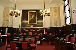The current Council meeting room was inaugurated on 30 June 1953. A ciceronian inscription from the previous meeting place of the Council – the notorious Sala Alessi on the second floor of the palace – is reported on the marble walls around the room: