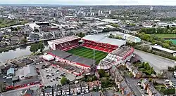 The City Ground is a football stadium in West Bridgford, Nottinghamshire, England, on the banks of the River Trent. It has been home to Nottingham Forest since 1898 and has a capacity of 30,455.