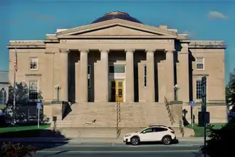 Plattsburgh City Hall is an historic government building located at City Hall Place in Plattsburgh, Clinton County, New York. It was designed by architect John Russell Pope and constructed in 1917. It is a three-story, steel frame, limestone clad building in the Classical Revival style. It features a projecting entrance portico with six Doric order columns and a low central dome.[2]: 6–7
