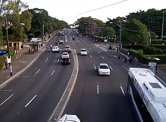 | City Road, as viewed from the bridge spanning the Darlington and Camperdown campuses of the University of Sydney | |