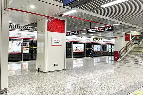 Civic Center (Chinese: 市民中心) is a station of Phase II of Line 1, Zhengzhou Metro. The station was opened on 12 January 2017.[1]
