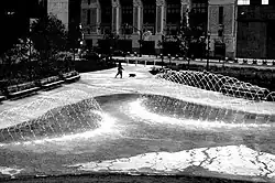 Civic Garden (formerly Belo Garden Park) is a 1.7-acre (0.69 ha) public park located in downtown Dallas, Texas, United States. The park is located between Main and Commerce, east of Griffin in the Main Street District. The park, formerly a parking lot, features perennial gardens, shaded groves, plaza spaces, an interactive fountain, a 10’ high hill which provides topographical relief and views over the central fountain plaza, and a shaded garden grove with movable tables and chairs.[1][2] In 2006 Belo Corporation (the owners of Dallas-area ABC affiliate WFAA and The Dallas Morning News) committed $6.5 million toward the $14.5 million construction of the park. The park was created to honor the employees of A. H. Belo Corporation and Belo Corp., past, present and future. It is one of several new downtown parks planned and construction in downtown Dallas between 2000 and 2020.