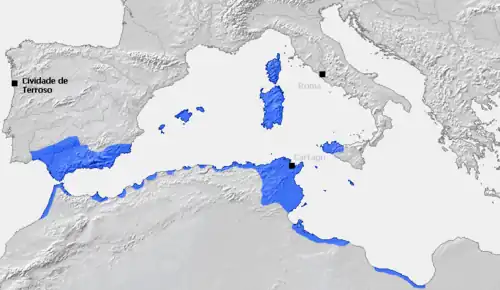 Located, in the heart of the Castro region,[1] the cividade played a leading role in the early urbanization of the region in the early 1st millennium BC, as one of the oldest, largest and impregnable castro settlements. It was important in coastal trading[2] as it was part of well-established maritime trade routes with the Mediterranean. Celtic and later Carthaginian influence a well-known, it was eventually destroyed after the Roman conquest in 138 BC. The city's ancient name is not known with certainty but it was known during the Middle Ages as Civitas Teroso (The City of Terroso). it was built at the summit of Cividade Hill, in the suburban area of Terroso, less than 5 km from the coast, near the eastern edge of modern Póvoa de Varzim.