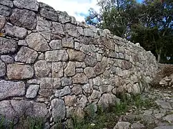 The walls had great blocks without mortar and were adapted to the hill's topography. The areas of easier access (South, East and West) possessed high, wide and resistant walls; while the ones in land with steep slopes were protected mainly by strengthening the local features.