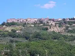 Civitella del Lago is a village in the Italian region of Umbria, administratively a frazione of the commune of Baschi. It is located just above Corbara lake, an artificial lake on the course of the river Tiber. The inhabitants during the winter are about 300 growing in summer to more than 700. There are sights of the Tiber Valley and the province of Viterbo, and on clear days it is possible to see as far as the hills above the Tyrrhenian Sea.
