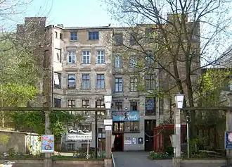 Fritz Bühler (1862–1929) and his wife Clara Bühler (1886–1971)[2]: 316 opened "Bühler's Ballhaus" on September 13, 1913, in the rear building of Auguststrasse 24/25. The house was built around 1895 with two halls: the dance hall on the ground floor and the mirror hall on the upper floor.[2]: 84 After Fritz Bühler's death, Clara initially continued to run the dance hall, by now known as "Clärchens Ballhaus", on her own. In 1932, she married Arthur Habermann (1885-1967), who supported her in her work.[2]: 134 The front building was destroyed in World War II,[3] but operations resumed after the end of the war. Clärchens Ballhaus would remain a private company over the coming GDR era.[2]: 184