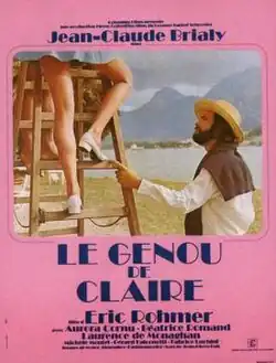 Claire's Knee (French: Le Genou de Claire) is a 1970 French romantic drama film written and directed by Éric Rohmer. It follows a soon-to-be-married man and his conflicted relationship with two teenage girls. The film stars Jean-Claude Brialy, Aurora Cornu, Béatrice Romand and Laurence de Monaghan. It is the fifth film in the series of the Six Moral Tales (1963–1972).