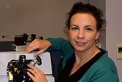 Following her PhD in Dundee, Eyers joined the group of Professor Natalie Ahn in the USA, and was awarded an Outstanding Postdoctoral Fellow Award (Pacific/Mountain Affiliate) of the American Heart Association (2004), held at the University of Colorado Boulder.[4] Subsequently, in 2005, she returned to the UK to take up a position with Professor Simon Gaskell as Deputy Head of the Michael Barber Centre for Mass Spectrometry at the University of Manchester. Her work in Manchester, a national and international centre of excellence for mass spectrometry best known for the development of fast atom bombardment (FAB), involved the development, refinement and application of strategies for protein quantification by mass spectrometry, and gas-phase characterisation of modified peptides and glycans. During her time in Manchester, she also contributed to securing the first bronze (2011) and subsequently silver (2013) Athena SWAN (Scientific Women's Academic Network) award for the School of Chemistry. In 2007, Eyers was awarded a personal Royal Society Dorothy Hodgkin Fellowship to set up her own research proteomics laboratory,[5] and was promoted to Senior Lecturer in 2010. Since 2014, she has been the Professor of Biological Mass Spectrometry in the Faculty of Health and Life Sciences at the University of Liverpool[5] and is currently Director of the Centre for Proteome Research.[6] She is currently Research and Impact Lead for the Institute of Integrative Biology at the University of Liverpool, a founder member of the Workload Model Working Group, which oversaw a charter Gold ranking Athena SWAN award for the IIB in 2017, a first for the University of Liverpool.[7] Eyers sits on the Selection Committee for L'Oréal-UNESCO For Women in Science, Professional Body Memberships and is a member of the Royal Society of Chemistry, the American Society for Mass Spectrometry, the British Society for Proteome Research (a member of the UK Biosciences Federation) , the British Mass Spectrometry Society and the UK Biochemical Society.[8] Her expertise in protein phosphorylation and biological mass spectrometry have resulted in a number of professional appointments. She is currently Chair of BBSRC Committee D.[9] Alongside Professors Sabine Flitsch and Perdita Barran, Eyers is also Co-founder and Scientific Director of Bio-Shape Ltd, a company specialising in the analysis of proteins, carbohydrates and their conjugates using mass spectrometry-based methods.