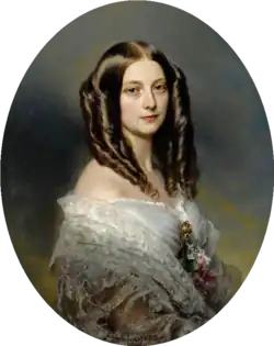 After the introduction of the Second Empire and the marriage of Emperor Napoleon III to Eugénie de Montijo, Claire Emilie was appointed lady-in-waiting (dame du Palais) to the new empress in 1853, and would continue to serve until 1870.[4] The ladies-in-waiting consisted of: