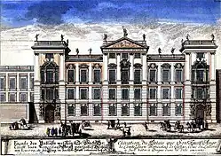 The palace was first designed by the imperial court architect Johann Bernhard Fischer von Erlach, from Vienna. It was built in 1714–18 by the Italian architect Domenico Canevale. During the rest of the 18th century, Jewish balls and concerts were held in the palace, and were attended by noteworthy artists including Mozart and Beethoven.