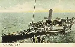 The pier was constructed by the Coast Development Company and opened in 1903, originally as a mooring for Belle steamers.[1] Its name originates from its close proximity to Claremont Road.[2] It was designed by D. Fox[3] and was originally 600 feet (180 m) before being extended in 1912 when a T-shaped landing head was added,[1] bringing it to a length of 760 feet (230 m).[3]