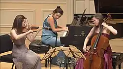 ![]() The Claremont Trio (left to right: Emily Bruskin, Andrea Lam, Julia Bruskin) perform at the Coolidge Auditorium at the Library of Congress in 2015 | |