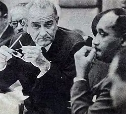 President Lyndon Johnson meets with Mitchell and other black leaders after the death of Martin Luther King Jr. in 1968.