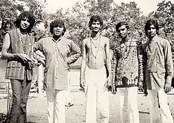 Their 1968 debut EP "Mango Nanda" was released on the JVPC007 Philips label selling up to 5,000 copies.[8] It included the songs Mango Nanda, Ruwan Puraya, Seetha Ude and Menike. Their second release "More Hits by the Moonstones" came out in November that year, on the Sooriya label and included the hits Kalu Mama, Rosa Male, Ramani and Goyam Kapanawa.[6] Later the song Mango Nanda was selected the best Sinhala song by the Hit Parade program on Radio Ceylon as well.[9] In 1969, the Moonstones welcomed female vocalist Indrani Perera who sang lead on the best selling hit Dilhani. Wijewardena himself only sang lead on Dileepa Podi Puthu an adaptation of a poem written by Karunaratne Abeysekera to his son.[5]