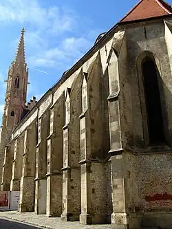 The Clarissine Church (Slovak: Kostol Povýšenia svätého Kríža, known as Kostol klarisiek) is a Gothic church, part of a complex of medieval buildings forming the former Convent of Poor Clares in the Old Town of Bratislava, the capital of Slovakia. The former Catholic church is owned by the city of Bratislava and it is used for cultural events. The church is a notable example of Gothic architecture in Slovakia.