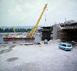 The vessel was commissioned by the Capital City Council (Fővárosi Tanács) of Budapest to assist the expansion of Árpád Bridge, as the two other floating cranes available at the time (named after Attila József and Endre Ady) were deemed unsuitable. The cost was covered by the council and the vessel was donated to Bridge-building Company (Hídépítő Vállalat, later becoming Hídépítő Speciál), as the company itself did not have sufficient funding. The final cost of Clark Ádám was 100 million Hungarian forints.[6] It was launched on October 21, 1980.[7] It was also used to build other bridges, like the Pentele Bridge,[8] or the Megyeri Bridge. It is also commissioned to launch hydrofoils.[4]