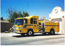 The PEPCON disaster was an industrial disaster that occurred in Henderson on May 4, 1988, at the Pacific Engineering and Production Company of Nevada (PEPCON) plant. The fire and subsequent explosions killed 2 and injured 372 people and caused an estimated US$100 million of damage. A large portion of the Las Vegas Valley within a 10 miles (16 km) radius of the plant was affected, and several agencies activated disaster plans.[7] The Clark County Fire Department Chief alerted all units to the facility. The Henderson Fire Department has units already staged closer to the explosion and many were injured. The Clark County Fire Department units were the second department in and took over medical/fire operations as many Henderson firefighters were down and injured; including the Henderson Fire Chief and the passenger in his car. Clark County Firefighters donned specialized personal protective equipment and moved into the scene. Leaking tanks of anhydrous ammonia and residue from acid and other caustic chemicals took days to repair and clean. Two were confirmed dead on scene; Bruce Halker the plant manager’s remains were discovered in his wheelchair and controller Roy Westerfield’s body was obliterated in the final blast. Both deceased had physical disabilities that disabled them from clearing the blast radius of the PEPCON plant in time. Some reports detailed that Roy Westerfield recognized the inevitable explosion and stayed behind to inform both Henderson and Clark County Fire Departments of the impending disaster. The Clark County Fire Department and other responding EMS agencies transported over 100 patients to five surrounding hospitals along with their heroic fire suppression and chemical overhaul.[8]