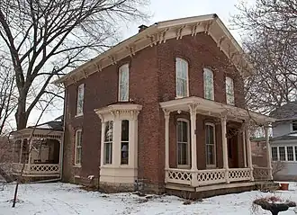 The Clark R. Griggs House is a historic house located at 505 W. Main St. in Urbana, Illinois. The house was built in 1871 by Clark Robinson Griggs; Griggs was a railroad developer who served as Urbana's mayor and was a key figure in establishing the University of Illinois at Urbana–Champaign in the city. Griggs never lived in the house he built, and his son occupied the house after Griggs moved east. The Italianate house is one of the few examples of the style in Urbana. The house's cornice is decorated with paired brackets, as is a projecting bay on the east side. The front porch has a balustrade and is supported by bracketed columns.[2]