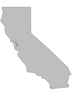 Clarkia franciscana is a federally listed endangered species. The two San Francisco populations are on land which is protected from development but is affected by many other factors including invasive plant species, trampling, and landscaping of vegetation.[1] The three Oakland populations are probably the remnants of one population that was fragmented by development in the heavily altered urban habitat.[1] The largest of the three occurrences is partially protected at Redwood Regional Park, but the other two are on privately owned property which is proposed to undergo some development.[1][2] Construction of housing is proposed on the site, with less than an acre being left undeveloped as a compromise between developers and environmental advocates.[3]