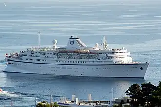 Classic International Cruises was seemingly founded in 1985, with the purchase of Funchal as the Arcalia Shipping Company Ltd, which eventually became Classic International. They operated the one ship until 1994, when they bought the Princess Danae. The Princess Danae entered service with an all-white hull and a sailing ship logo on her funnel. Funchal was given a yellow and blue striped funnel and a white hull, but by 2000 her livery was changed to what now all Classic International ships have.[3] Since 2000 they have purchased 3 ships, Arion, Athena and Princess Daphne, the near-identical sister of Princess Danae.[4] With their main headquarters in Lisbon, Portugal, the company also has several branches based in Paris, France, Piraeus, Greece, Neutral Bay, Australia, Stockholm, Sweden, and London, England.[5]