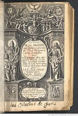 The mission organized the dispatch of Tupinambá Indians from Maragnan to the court of Louis XIII in France, where they created a sensation.[3] Père Claude d'Abbeville commented enthusiastically on the visit of the Indians in Paris with the words: "Who would have thought that Paris, used to the strange and the exotic, would go so wild over these Indians?".[3] The Indians – only three out of a total six had survived the travel by that time – were baptized in the Church of the Capuchins.[3][4]