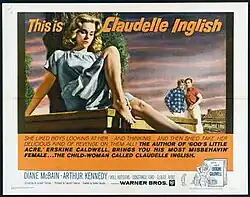 Claudelle Inglish is a 1961 American film directed by Gordon Douglas and based on the 1958 novel by Erskine Caldwell. It stars Diane McBain and Arthur Kennedy.[2] It was nominated for an Academy Award in 1962 for Best Costume Design (Howard Shoup).[3] The film was cast with many Warner Bros. Television contract stars, including Diane McBain who replaced the original choice for the lead Anne Francis.[4] McBain was then co-starring in Surfside 6 and had previously appeared in Parrish.