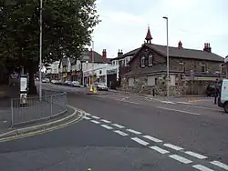 The A5027 Upton Road seen from the junction with Shrewsbury Road. St Bede's Chapel and Community Centre is across the road. | |