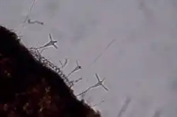 Clavariopsis is a near-cosmopolitan genus of fungi belonging to the order Pleosporales, but the family is unknown.[3] Clavariopsis aquatica was the first species described of the genus, and was one of the first aquatic hyphomycetes ever described.[3]