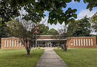 The Clay County Courthouse, Western District is located at Courthouse Square in the center of Corning, one of two county seats of Clay County, Arkansas (the other is Piggott). It is a single-story masonry structure, built out of concrete with brick facing. The main facade is symmetrical, with a recessed entrance area sheltered by a portico with a flat roof. The courthouse was built in 1966–67 to a design by Donnellan & Porterfield. Both this courthouse and that in Piggott were built in the wake of a fire that destroyed the old Corning courthouse, and both were designed by Donnellan & Porterfield. Both are locally prominent examples of New Formalism style of Modern architecture.[2]