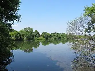 Clay Pit Pond, also known as Claypit Pond, is a pond in the Boston suburb of Belmont in Middlesex County, Massachusetts situated between Concord Avenue and Belmont High School. It is a man-made pond, excavated as the source of clay for industrial brick-making on the site from 1888 to 1926. The pond was formed in 1933 when the Wellington Brook was redirected to flood the site, making it an essential part of the drainage system for much of Belmont.