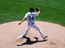 On July 23, 2008, Richard made his major league debut, allowing five runs (four earned) on seven hits in four innings pitched against the Texas Rangers.[5] In 13 appearances (eight starts) for Chicago, Richard struggled to a 2–5 record and 6.04 ERA.[6] In 2009, Richard was initially used out of the bullpen, but was later moved to the starting rotation on May 12, and appeared in 26 games (14 starts) for the White Sox, registering a 4–3 record and 4.65 ERA.[6]