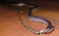 Clelia clelia preys almost exclusively on snakes, especially venomous snakes of the genera Bothriechis, Bothrops, Crotalus, Lachesis, Micrurus, and Porthidium.[7][8]