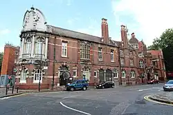 The vestry considered adopting the Baths and Washhouses Act 1846 in the 1850s and 1870s, but this was not acted upon.[1] Using the powers of the Sanitary Act 1866, in 1876 a mortuary and in 1877 a coroner's court designed by Henry Saxon Snell was opened by the vestry.[2]