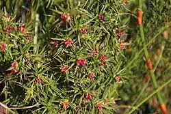Cliffortia ruscifolia, the climber's friend, is a widespread species of flowering plant in the family Rosaceae, native to the Cape Provinces of South Africa.[1] A 1 to 1.5 m (3 to 5 ft) tall shrub with painfully sharp leaves, it is found growing on rocks and cliffs, and it is a pioneer species of disturbed areas.[2] It is prone to hairy white galls of unknown cause.[2]