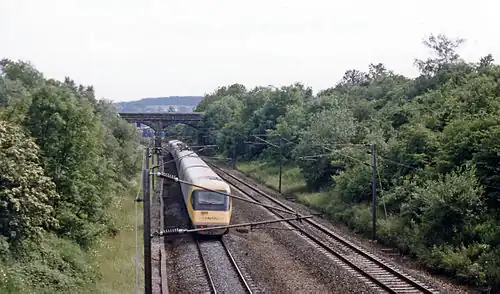 ![]() Advanced Passenger Train southbound approaching the site of the station in 1986 | |||||