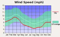| Average precipitation days (≥ 0.01 in) | 9.2 | 9.3 | 10.5 | 9.4 | 10.9 | 8.0 | 8.7 | 7.2 | 6.6 | 8.1 | 8.5 | 9.5 | 105.9 |