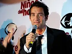 In 2006, Owen starred in Children of Men.[9] The film was nominated for various awards, including an Academy Award for Best Adapted Screenplay; Owen worked on the screenplay, although he was uncredited.[10] The next year he starred alongside Paul Giamatti in the film Shoot 'Em Up and appeared as Sir Walter Raleigh opposite Cate Blanchett's Elizabeth I of England in the film Elizabeth: The Golden Age. He appeared in the Christmas special of the Ricky Gervais and Stephen Merchant show Extras.