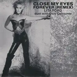 "Close My Eyes Forever" is a duet by Lita Ford and Ozzy Osbourne from Ford's 1988 album Lita. The song was written by Ford and Osbourne while drunk.[4][5] In 1989, a remix of the song[6] was released as a single, peaking at number eight on the US Billboard Hot 100 chart in 1989, and number 25 on the US Billboard Album Rock Tracks chart. It is Ford's highest charting single and the highest charting hit of Osbourne's solo career. The song was one of four singles from the album Lita.[7]