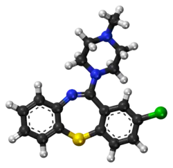 Clotiapine (Entumine) is an atypical antipsychotic[2] of the dibenzothiazepine chemical class.[3] It was first introduced in a few European countries (namely, Belgium, Italy, Spain and Switzerland), Argentina, Taiwan and Israel in 1970.[4]