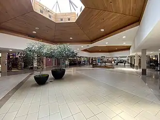 On November 15, 1956, Cloverdale Mall opened with 34 stores such as Dominion, S.S Kresge, Laura Secord Chocolates, Tip Top Tailors, United Cigar Stores as well as the Bank of Nova Scotia and Canadian Bank of Commerce.[1] The centre of the plaza was an open-air concrete courtyard. A Morgan's anchor store of two floors joined in August 1960 as part of an expansion of the shopping centre.[2] In the 1960s, following the purchase of Morgan's by the Hudson's Bay Company, the Morgan's store was converted into The Bay. In the 1980s, Cloverdale Mall was converted into an enclosed mall and expanded.